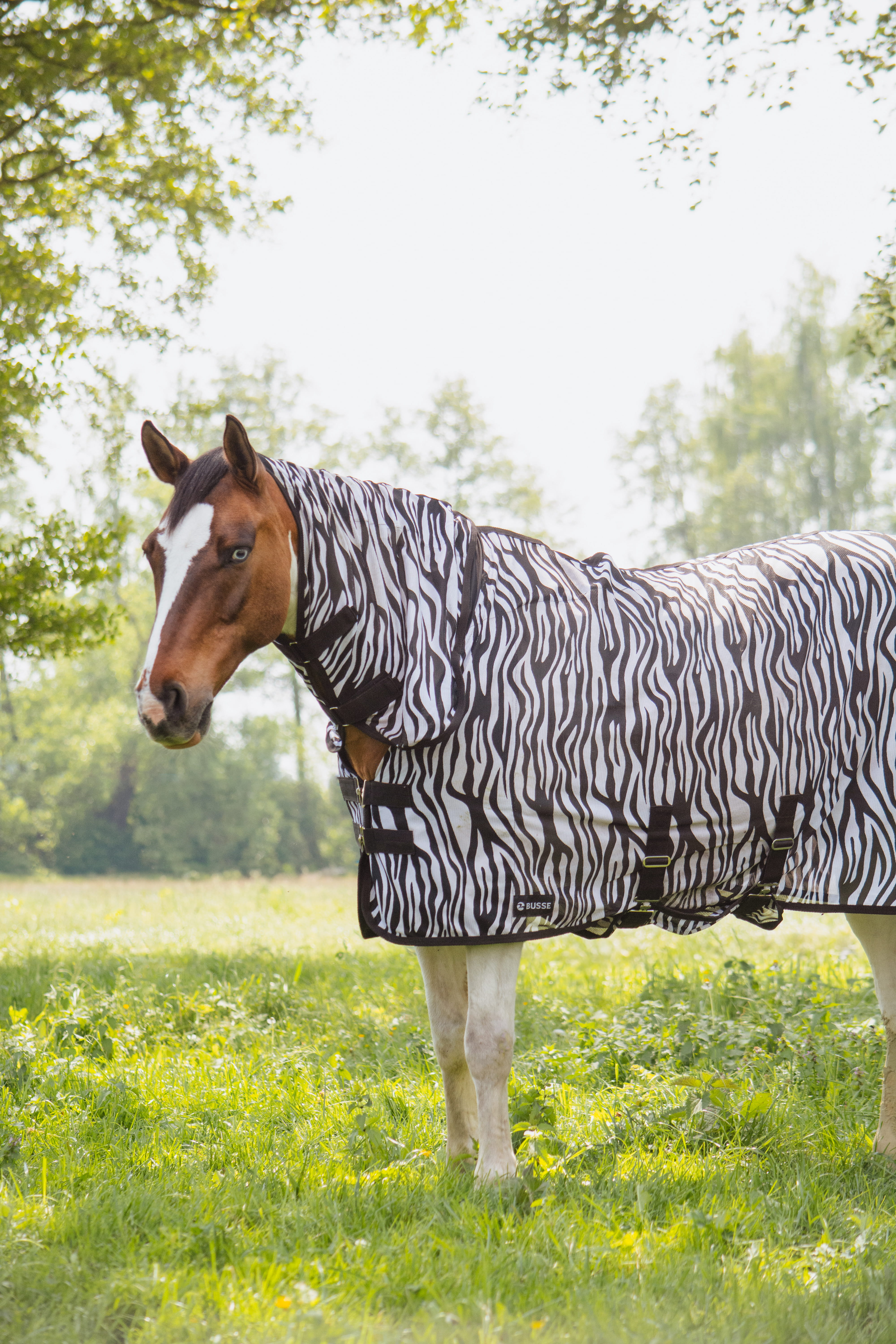 Das schwarz-weiße Zebra-Muster sorgt zusätzlich für einen natürlichen Anti-Bremsenschutz: Studien haben gezeigt, dass Pferde durch dieses Muster von Pferdebremsen nicht mehr als Ziel anvisiert werden.