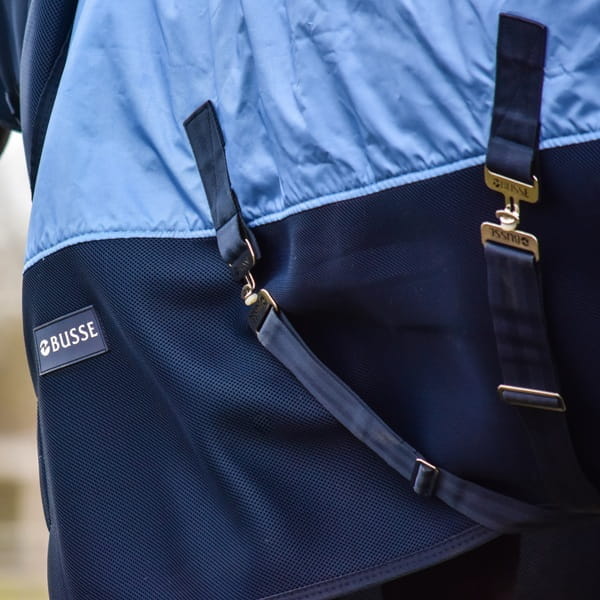 Speziell belüftete Kombination aus Outdoor-Regendecke und hochfunktionaler Abschwitzdecke für das Rausstellen nach dem Training und für unbeständiges Wetter (Sonne/Regen/Wind) in der Übergangszeit.