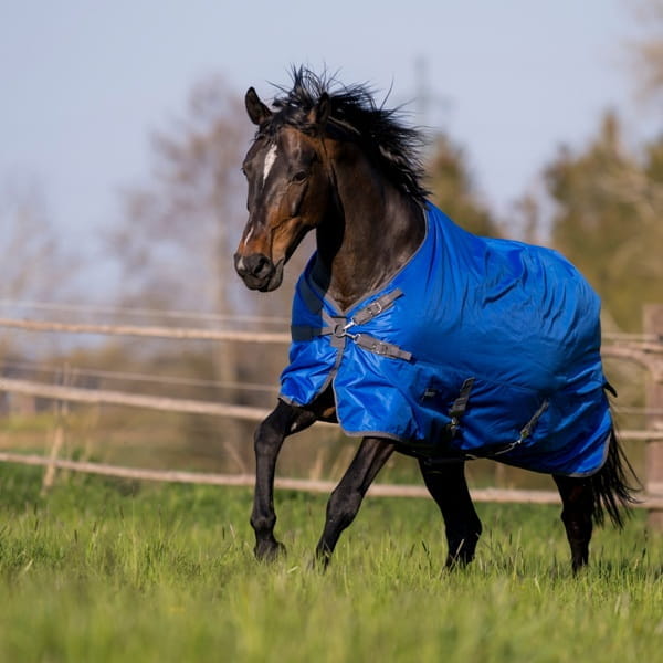 Solide Paddock- und Regendecke mit Isolierung für die kälteren Tage im Jahr.