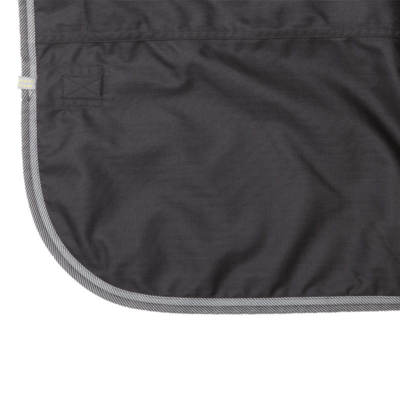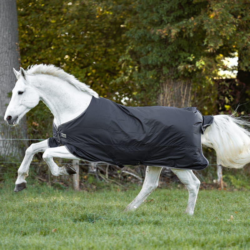 Das Material besteht aus einem 600 D Ripstop-Polyester Gewebe, mit folgenden Werten: 3000 mm Wassersäule, Atmungsaktivität 3000 g/qm in 24 h). Folgende Ausstattungsmerkmale runden die Decke ab: Möglichkeit der Verwendung von Beinschlaufen, tiefer Schweifriemen, großer Schweiflatz, Kreuzgurte mit Elastikeinsatz, glattes Innenfutter, 2-facher Drehhaken-Brustverschluss mit zusätzlichem Klett.