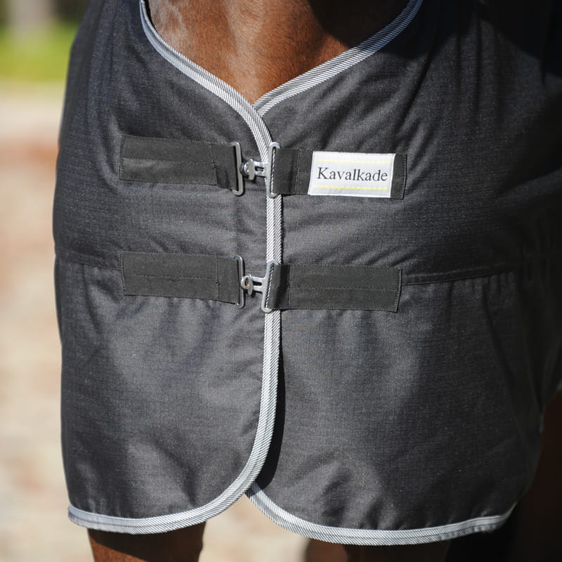 Die Kavalkade Outdoordecke Winnipeg überzeugt durch ihre hervorragende Passform. Erhältlich in zwei verschiedenen Füllungen für unterschiedliche Witterungsbedingungen. Die Decke wird ohne Rückennaht und mit vorgezogenem Widerrist verarbeitet. Somit ist die tatsächliche Länge der Decke ca. 10 cm länger als die gemessene Länge des Pferderücken. Dies ist beabsichtigt, damit die Decke vor dem Widerrist liegt, die Schulterpartie optimal schützt und beim Heben und Senken des Kopfes nicht hinter den empfindlichen Widerrist rutschen kann.