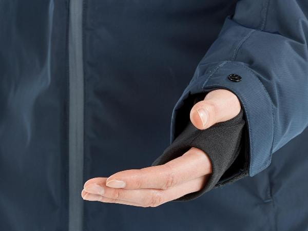 -durch Klettverschluss einstellbare Ärmelabschlüsse mit Lycra®-Innenbündchen inkl. Daumenloch für warme Hände