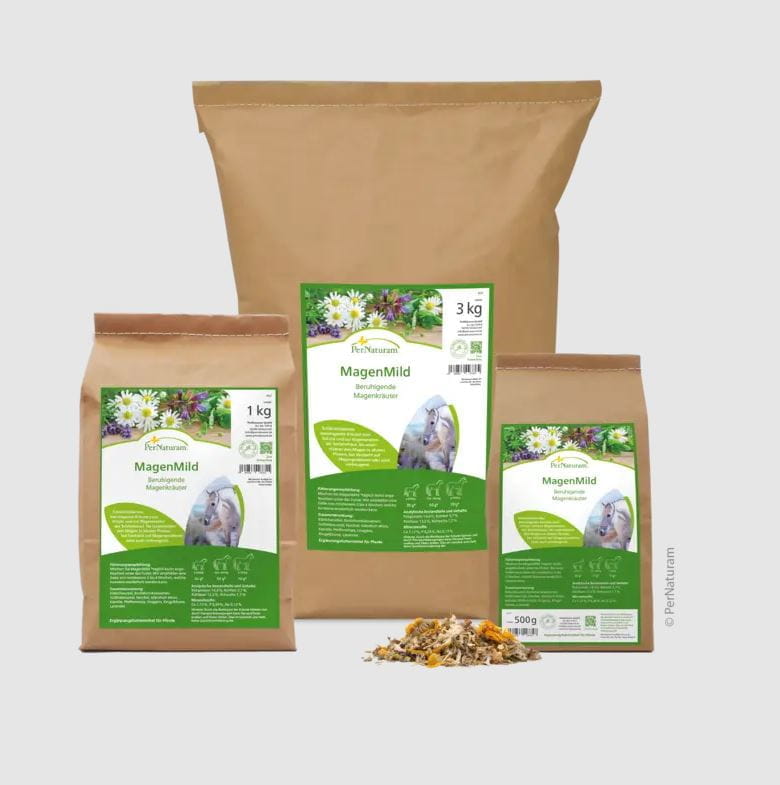 Mischen Sie MagenMild täglich leicht angefeuchtet unter das Futter. Wir empfehlen eine Gabe von mindestens 3 bis 4 Wochen, welche kurweise wiederholt werden kann.