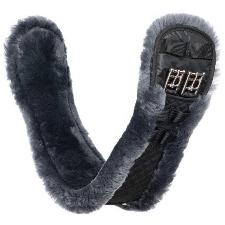 Dieser anatomisch geformte Lammfellsattelgurt aus der PT-Lammfell Line ist aus 100% Lammfell. Der schwarze Steppstoff ist aus strapazierfähiger Baumwolle und die Wollhöhe beträgt ca. 30 mm. Der Gurt verfügt über zwei Edelstahlschnallen ohne Schnellgurtung. Außerdem sind die Sattelgurte mit zwei D- Ringen zum befestigen von Hilfszügeln, Vorderzeug oder Martingal ausgestattet. Für einen optimalen Sitz haben die klassischen Lammfellkurzgurte der PT-Lammfell Line eine Führung aus Nylongurtmaterial für die Gurtstrippen des Englischsattels.