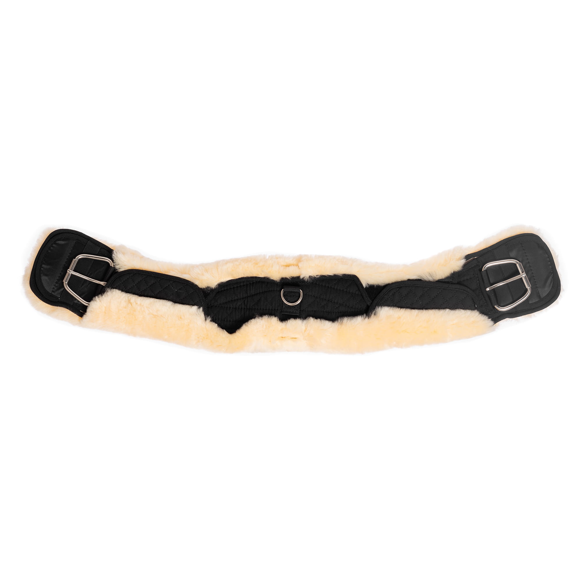 Dieser Lammfellsattelgurt aus der PT-Lammfell Line ist aus 100% Lammfell und hat die beliebte Mondform. Der schwarze Steppstoff ist aus strapazierfähiger Baumwolle und die Wollhöhe beträgt ca. 30 mm. Der Gurt verfügt über zwei Edelstahlschnallen mit Schnellgurtung (Vorsicht beim Gurte!). Außerdem sind die Sattelgurte mit einem D- Ringen zum befestigen von Hilfszügeln, Vorderzeug oder Backcinch ausgestattet. Für einen optimalen Sitz haben die Lammfellwesterngurte der PT-Lammfell Line eine Führung aus Nylongurtmaterial für das Off Billet und den Tie Strap. Das Lammfell dieses PT-Lammfell Linie Mondgurtes ist mittels Klettverschluss abnehmbar.