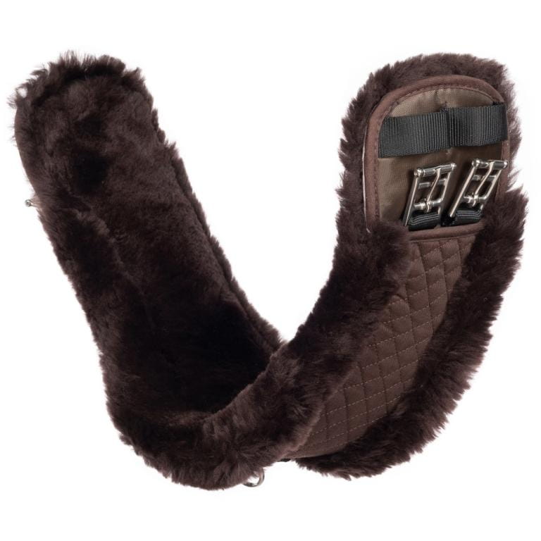 Dieser klassik Lammfellsattelgurt mit einer Mondform aus der PT-Lammfell Line ist aus 100% Lammfell. Der schwarze Steppstoff ist aus strapazierfähiger Baumwolle und die Wollhöhe beträgt ca. 30 mm. Der Gurt verfügt über Edelstahlschnallen mit Schnellgurtung (Vorsichtig Gurten!). Außerdem sind die Sattelgurte mit einem D- Ringen zum befestigen von Hilfszügeln, Martingal oder Vorderzeug ausgestattet. Für einen optimalen Sitz haben die Lammfellklassikgurte der PT-Lammfell Line eine Führung aus Nylongurtmaterial für die Gurtstrippen des Englischsattels.