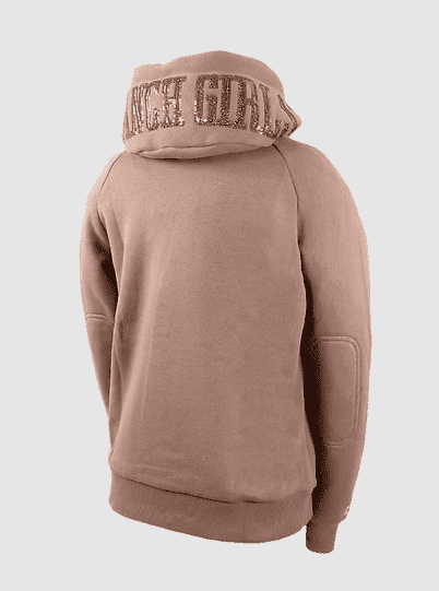 RanchgirlsHooded Sweat Jacket SHINEY nougat, besteht aus unserem bestem Sweatshirt Material, "der Dreifadenware", mit fein aufgerauter Innenseite. Der Raglan Schnitt lässt genug Bewegungsfreiheit zu und passt sich gut an, die Armlänge ist ideal für Western Reiter. Unser edles Paillettendesign auf der Kapuze und Brust, macht den Sweater besonders. Eine kleine Reißverschlusstasche, unterhalb der Kangootasche, lässt wichtige Dinge, wie zum Beispiel einen Autoschlüssel, beim Reiten sicher unterbringen.