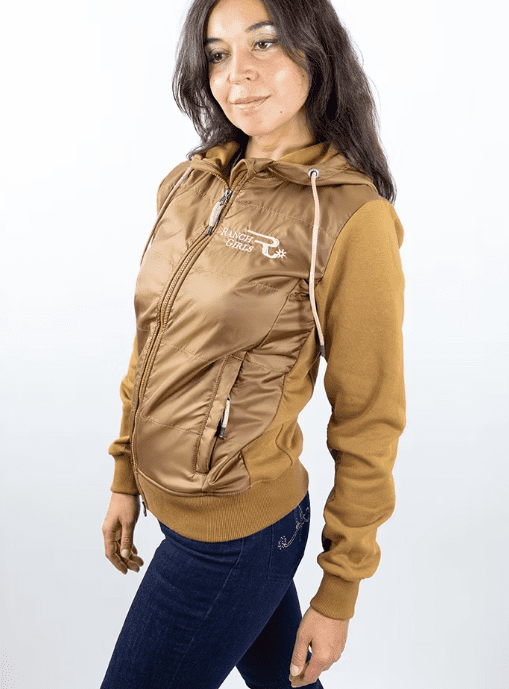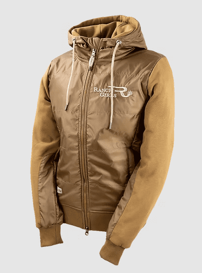 Der unschlagbare Ranchgirls Sweatshirt Pro Shield CARRY caramel, ist eingetroffen. Die ultimative Kombination 3 Faden Sweatshirt Qualität und Nylon. Das Nylon Material - am vorderen Körper, an der Kapuze und über die Schulterblätter - , hält Wind und Regen ab. Die warme Sweatshirt Qualiät sorgt für Bewegungsfreiheit und Feuchtigkeitsaustausch. Ein toller Artikel der Dich durch alle Jahreszeiten begleitet. Feine Ranchgirls Logo Stickereien kennzeichnen einen besonderen Markenartikel.