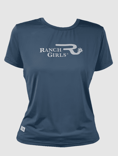 Das neue Ranchgirls T-Shirt FRIDA in der Farbe Grey ocean, ist das ultimative Sommershirt für alle Westernreiter. Hergestellt aus 88% Polyamid und 2% Spandex, fühlt sich der Stoff kühl und glatt auf der Haut an und trocknet schnell. Dieses sportliche Westernshirt ist in drei modischen Farben erhältlich: Smoke Blue, Blackberry und Stone Blue. Das Ranch Girls Brand Logo ist mit einem silbernen reflektierenden Print veredelt und verleiht dem Shirt einen besonderen Akzent.
