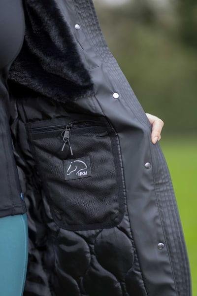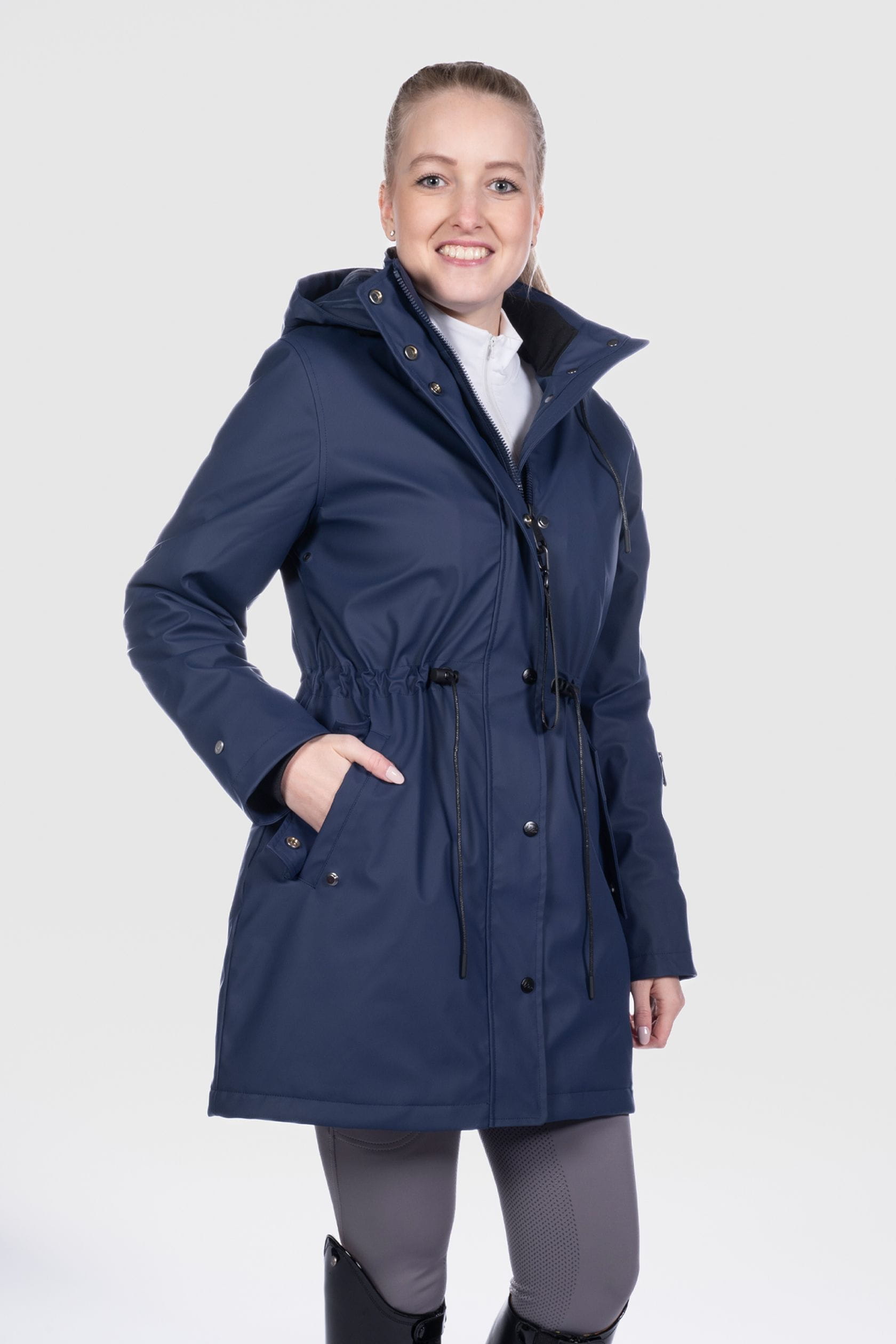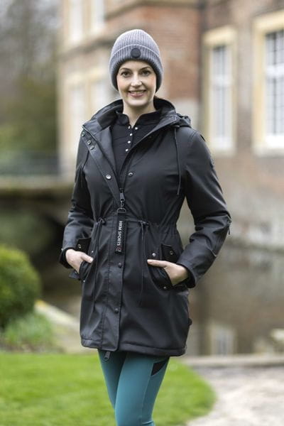 Die Jacke ist auch für Reiterinnen geeignet, da sie hinten Reitschlitze mit Faltenboden und reflektierendem Aufdruck hat. Ein abnehmbarer Schlüsselanhänger rundet das praktische Design ab.