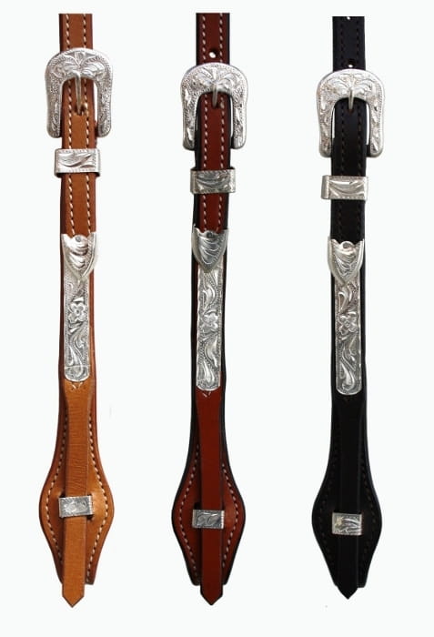Schönes Showkopfstück mit Punzierung aus dunkelbraunem Leder mit einem V-Shaped Stirnriemen.Die Schnallen sind silber mit einer floralen Gravierung.Die Schnallen lassen sich leicht mit Chicagoschrauben tauschen und die Gebisseinschnallung erfolgt ebenfalls über den Chicagoschrauben Verschluss.In der mittleren Einstellung hat das Kopfstück ca. 99cm.Das Kopfstück ist für alle im Westertyp stehende Pferde geeignet.ACHTUNG: Die Chicagoschrauben regelmäßig nachziehen oder mit Nagellack/Sekundenkleber fixieren. Ein verlorener Concho oder eine verlorene Schraube sind keine Reklamation.