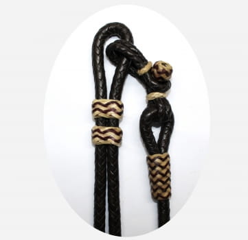 Hochwerige Romal Reins aus geflochtener Naturrohhaut mit brown Braided VerzierungenEine typische Variante von runden, geschlossen Zügeln im Westernreiten sind die Romal Reins. Romal Reins gibt es in verschiedenen Leder-Varianten mit Verzierungen. Die Romal Reins werden einhändig geritten