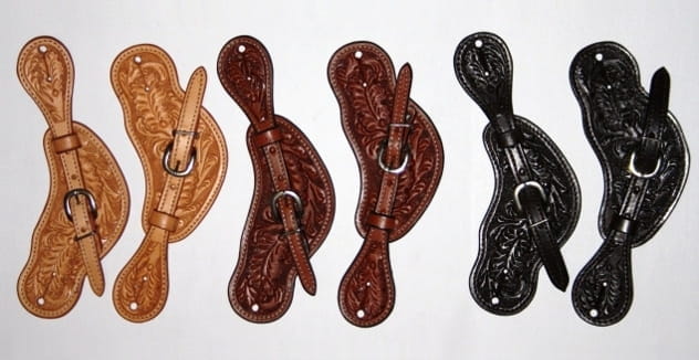 Sporenriemen dienen zu Befestigung der Sporen am Westernstiefel. Sporen werden aus Rindsleder hergestellt und können mittels Schnalle und Riemen in der Länge verstellt werden. Sporenriemen gibt es in zahlreichen Varianten und unterschiedlichen Verzierungen. Die Chicagoschrauben regelmäßig kontrollieren, der Verlust ist keine Reklamation.