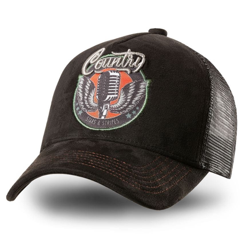 Das TC COUNTRY Cap von Stars&Stripes ist der Geniestreich unter den Base Caps: 5-Panels Western Base Cap in Wildlederoptik mit Mesh einsatz. Der strapazierfähige Korpus ist hochwertig und robust und schmiegt sich dennoch angenehm weich an den Kopf. Die aufwendige Bestickung auf dem Patch vorne, und der Schirm in Wildlederoptik mit 6 Ziernähten machen die Curved Brim Cap zum coolen Sammlerstück. Sie ist bestens für Outdoor-Aktivitäten geeignet. Die Trucker Cap hat einen in Mützenstoff bezogenen Knopf an der Oberseite, der den perfekten Abschluss bildet. Größenverstellbar durch den klassischen Snapback-Verschluss am Hinterkopf. Dies garantiert die perfekte Passform. Ein Baumwoll-Schweißband und eingestickte Luftösen sorgen für optimale Atmungsaktivität und Feuchtigkeitsregulierung. Die angesagte Trucker Cap in zeitlosem Design lässt sich zu jedem Style vielseitig kombinieren.