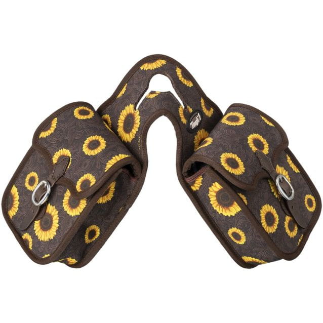 Diese Horntasche ist aus wetterbeständigem 1200-Denier-Material in einer Vielzahl von lustigen und farbenfrohen Drucken gefertigt. Alle Kanten sind präzise zugeschnitten und genäht, um Stärke und Haltbarkeit zu gewährleisten. Die 6 x 7 x 2 Zoll großen Taschen werden mit einem Lederriemen und einer verstellbaren Schnalle geschlossen, damit Ihre Sachen unterwegs sicher verstaut sind. Lässt sich leicht über die meisten Sattelhörner schieben.