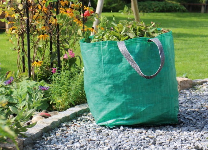 Er ist robust, reißfest und verfügt über einen Griff an der Unterseite, der zum Entleeren dient.