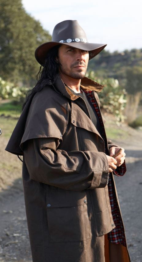 Klassischer geölter Duster in der Farbe braun. Das absolute Muss für jeden coolen Cowboy. Gerüstet für jede Wetterlage durch clevere Details wie: - feste, langlebige Qualität aus reiner Baumwolle. - Windschutz durch überlappende Metall-Druckknopfleiste - Taillenkordelzug - abknöpfbares Schultercape mit Halteschlaufen - zwei große aufgesetzte Außentaschen mit Eingriff von oben sowie von der Seite - eine Innentasche - hinten langer Schlitz mit Druckknöpfen - innen Halteschlaufen zur Befestigung an den Beinen Farbe: braun, mit rotem Karo-Futter