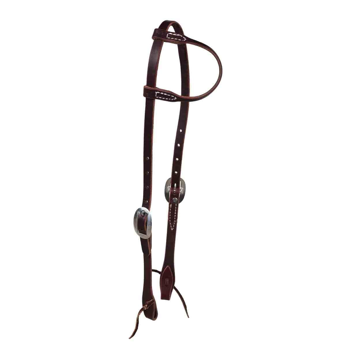 Absoluter Preis-Leistungssieger - tolles Einohr Westernkopfstück aus Latigo Leder mit rolled Ear. Das Einohrkopfstück ist mit Stainless Steel Schnallen versehen und hat an den Gebissenden einen Waterloop Verschluss für einen einfachen Gebisswechsel.