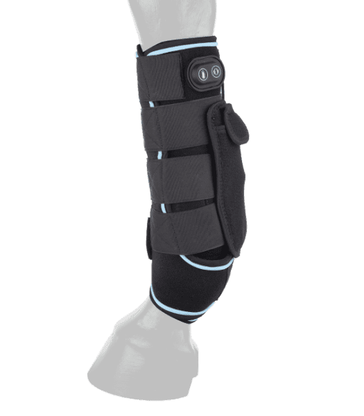 Bei Verletzungen, zum Aufwärmen und lockern oder nach Beanspruchung im Sport, die neue W-Health & Care Gamasche von Waldhausen unterstützt die Regeneration des Pferdebeines durch 3 Funktionen - vibrieren, kühlen oder wärmen.