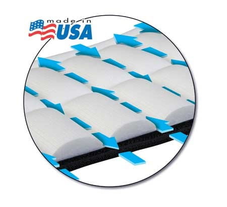 Airflex ist ein spezielles Schaummaterial, in das Luftkanäle eingearbeitet wurden. Dank dieser Luftkanäle gibt der Gurt die Wärme des Pferdes viel schneller nach aussen ab und sorgt für eine maximale Luftzirkulation.