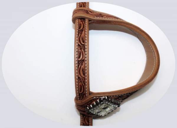 Auffällig schönes Zweiohr Showkopfstück in der Farbe light/russet mit hellen Flowermuster im Leder. Dieses Westernkopfstück ist aus super weichem Leder welches dunkelbraun unterlegt ist. Die Schnallen lassen sich leicht mit Chicagoschrauben tauschen und die Gebisseinschnallung erfolgt ebenfalls über den Chicagoschrauben Verschluss. Diese Trense kann als Ein oder auch als Zweiohrtrense genutzt werden, da die Ohren abnehmbar sind. Die Ohren sind bereits vorgedreht und passen sich daher super dem Pferdeohr an.