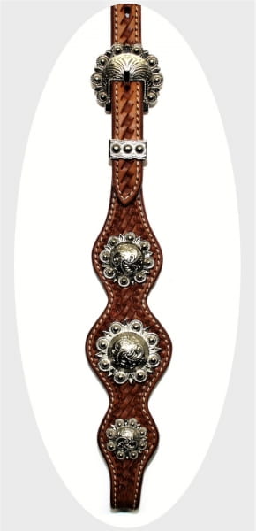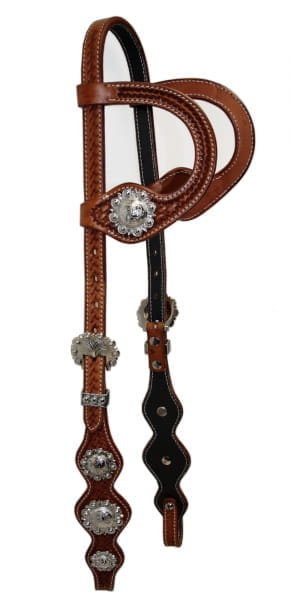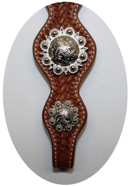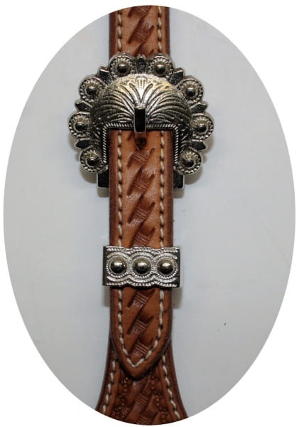 Tolles Zweiohr Showkopfstück in der Farbe light mit Basketmuster. Dieses Westernkopfstück ist aus super weichem Leder welches dunkelbraun unterlegt ist. Die Schnallen lassen sich leicht mit Chicagoschrauben tauschen und die Gebisseinschnallung erfolgt ebenfalls über den Chicagoschrauben Verschluss. Diese Trense kann als Ein- oder auch als Zweiohrtrense genutzt werden, da die Ohren abnehmbar sind.